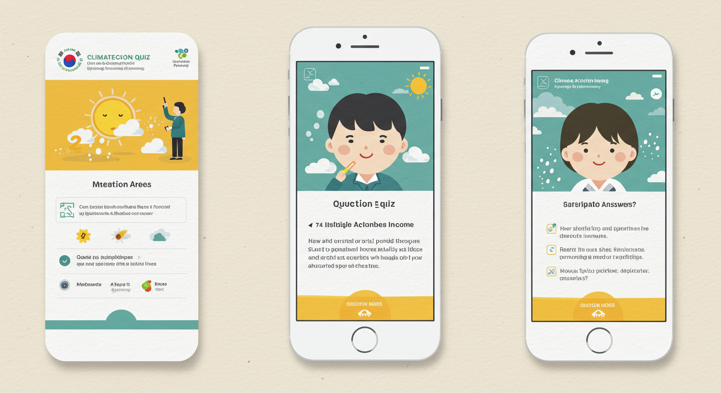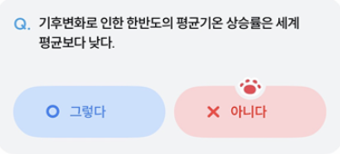 매일 정오, "기후행동 기회소득" 앱에서 새로운 퀴즈가 출제돼요. 문제는 기후변화, 탄소중립, 환경 보호와 관련된 내용으로 나오고 OX 문제, 객관식, 주관식 등 다양한 유형이 섞여 있어요.