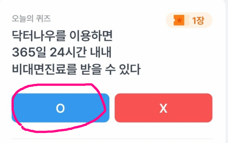 | 닥터나우 | 앱 내 '[내 건강]' → '오늘의 퀴즈' | 룰렛 티켓 획득, 포인트 지급 | 룰렛으로 네이버페이, 상품 등 획득 가능, 광고 없는 환경 제공 |