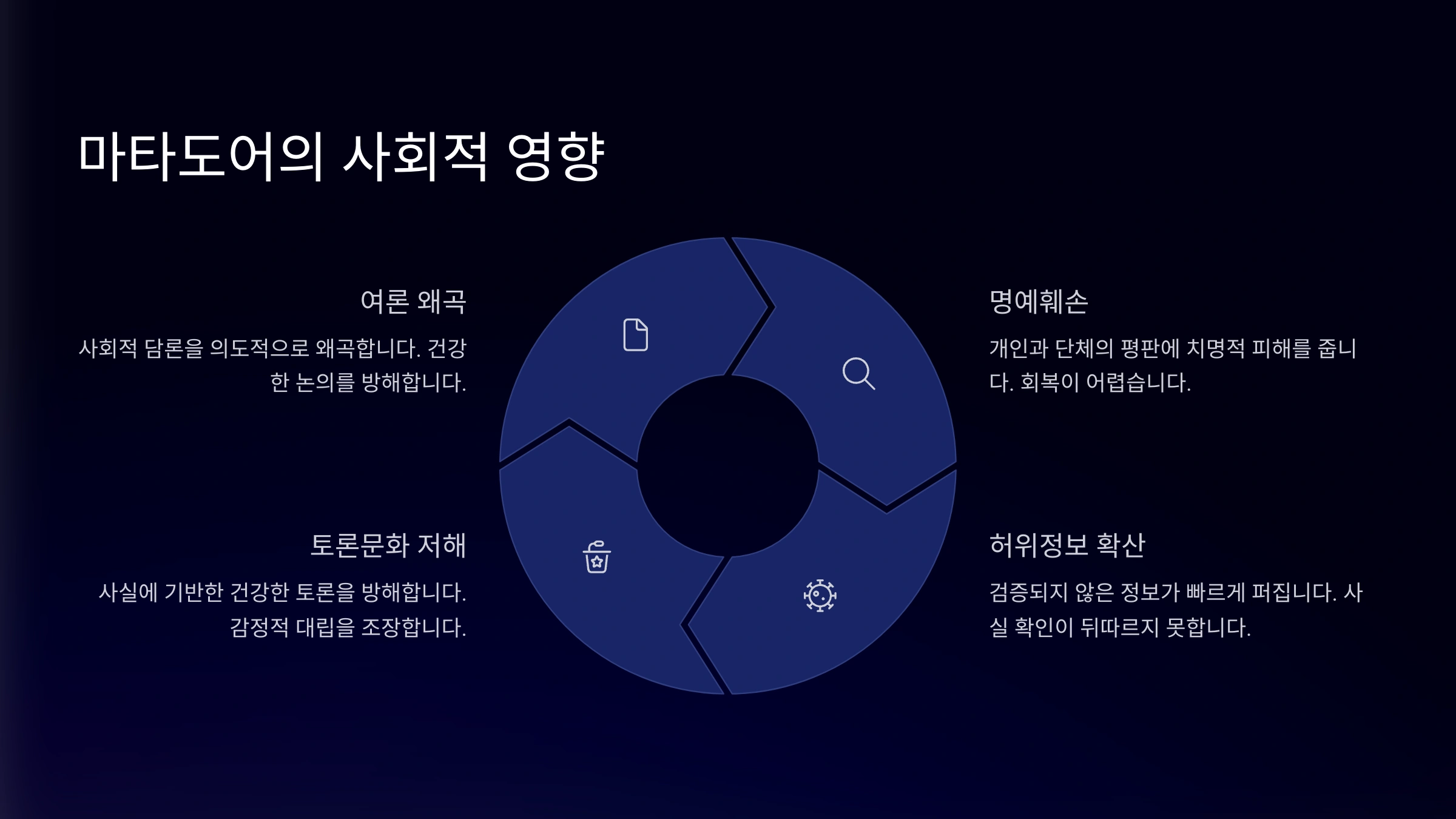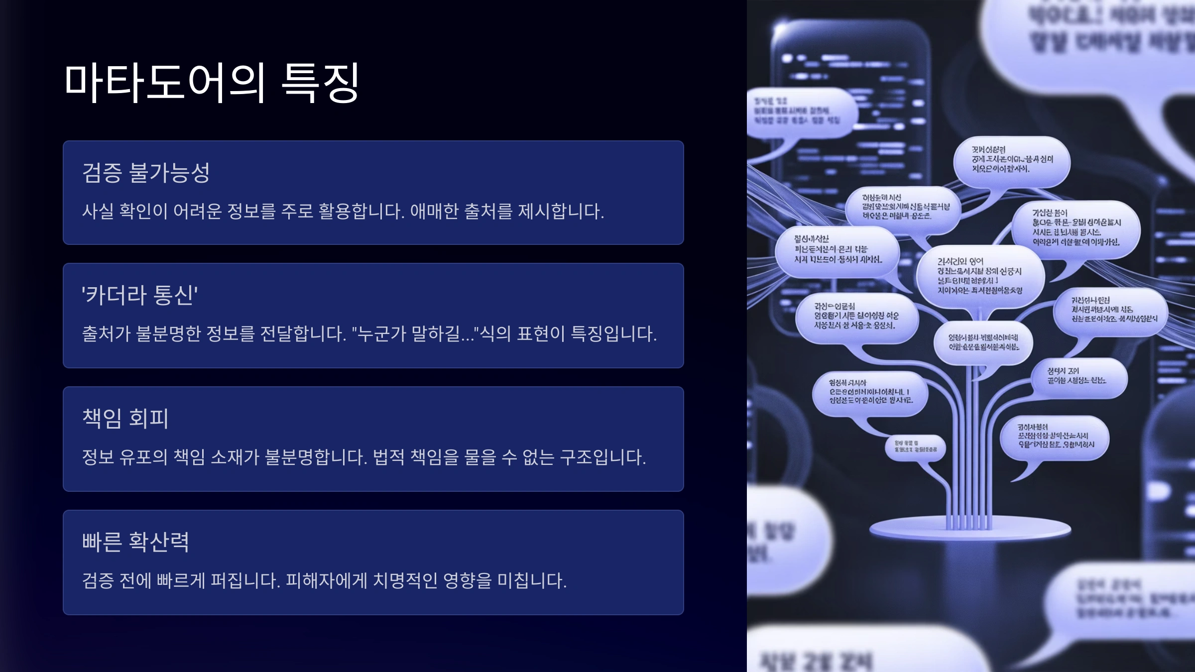 결국, 마타도어를 이겨내는 가장 강력한 무기는 비판적으로 정보를 소비하는 우리 시민들의 깨어있는 의식입니다.