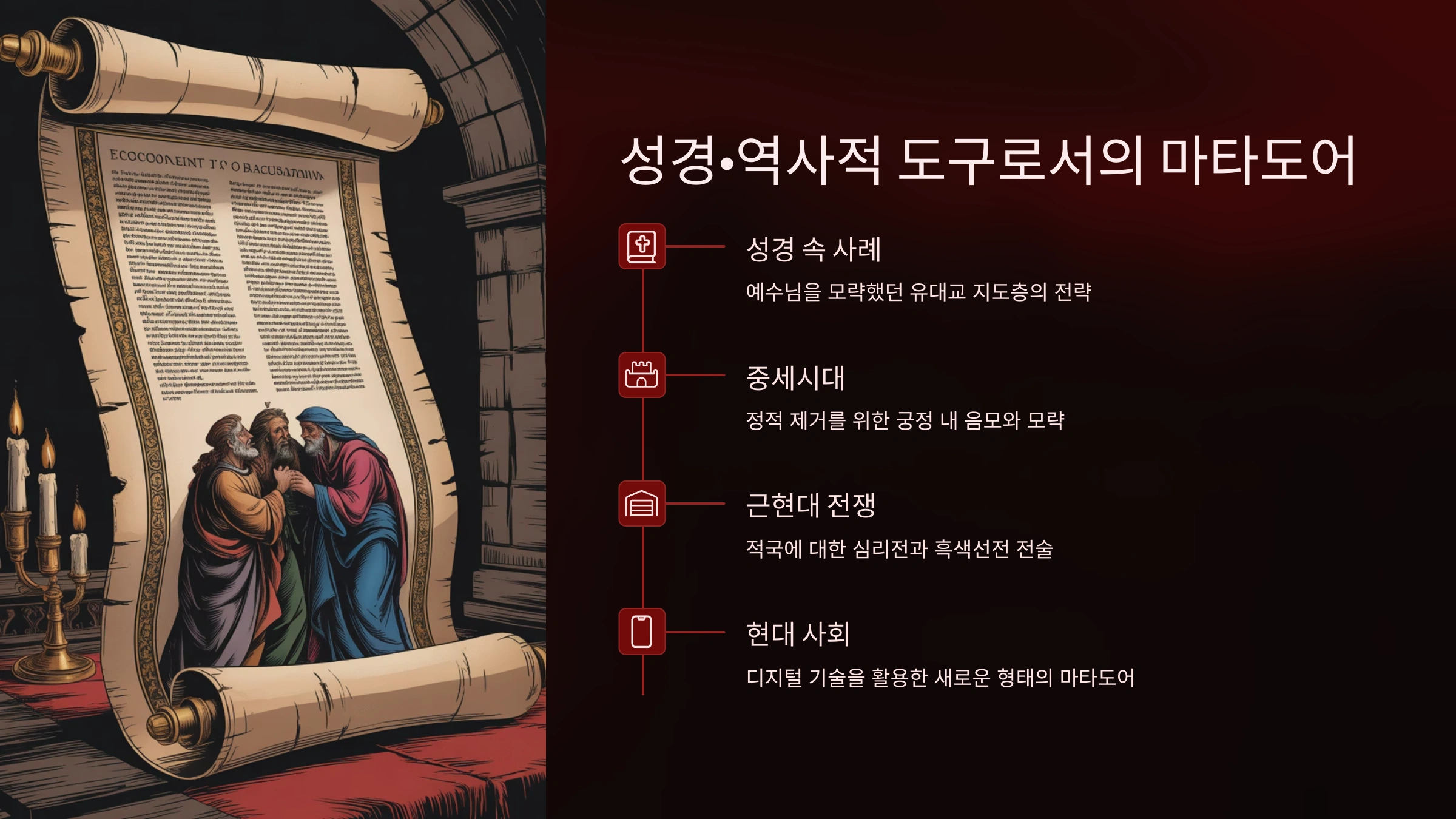 - 비유적 의미: 거짓 선동으로 상대의 정치적 생명을 끊는 행위