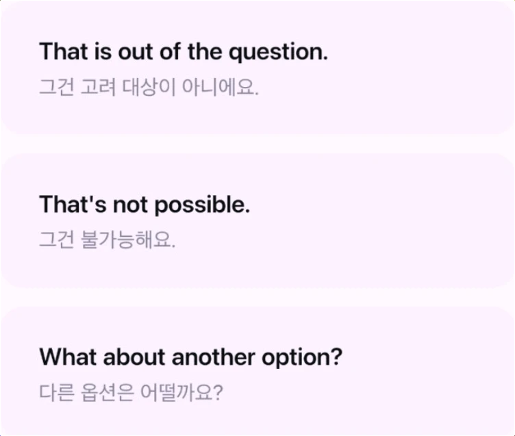 • 매일 새로운 문제 출제: 생활 영어 표현, 관용구, 단어 뉘앙스 차이 등 다양한 문제 제공
