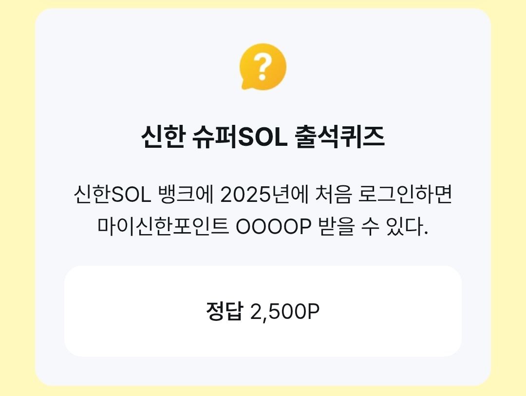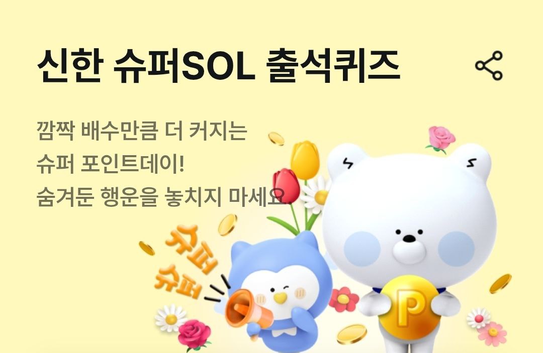 신한 슈퍼SOL 출석 퀴즈는 매일 간단히 참여만 해도 마이신한포인트를 적립할 수 있는 앱테크 활동이에요.