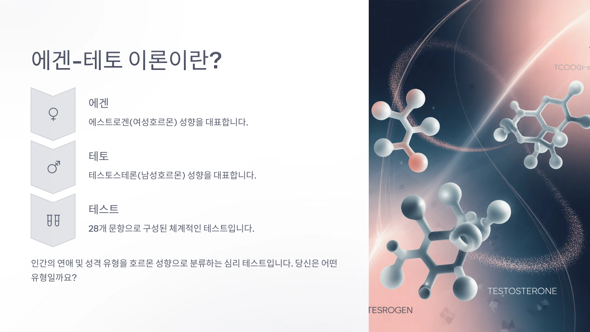MBTI는 끝났다! 요즘 대세 '에겐녀 vs 테토녀' 테스트, 당신의 진짜 성향은? 애교 넘치는 관계주의자 '에겐녀'와 논리적인 독립주의자 '테토녀' 사이에서 당신의 마음은 어디로 향할까요? 지금 바로