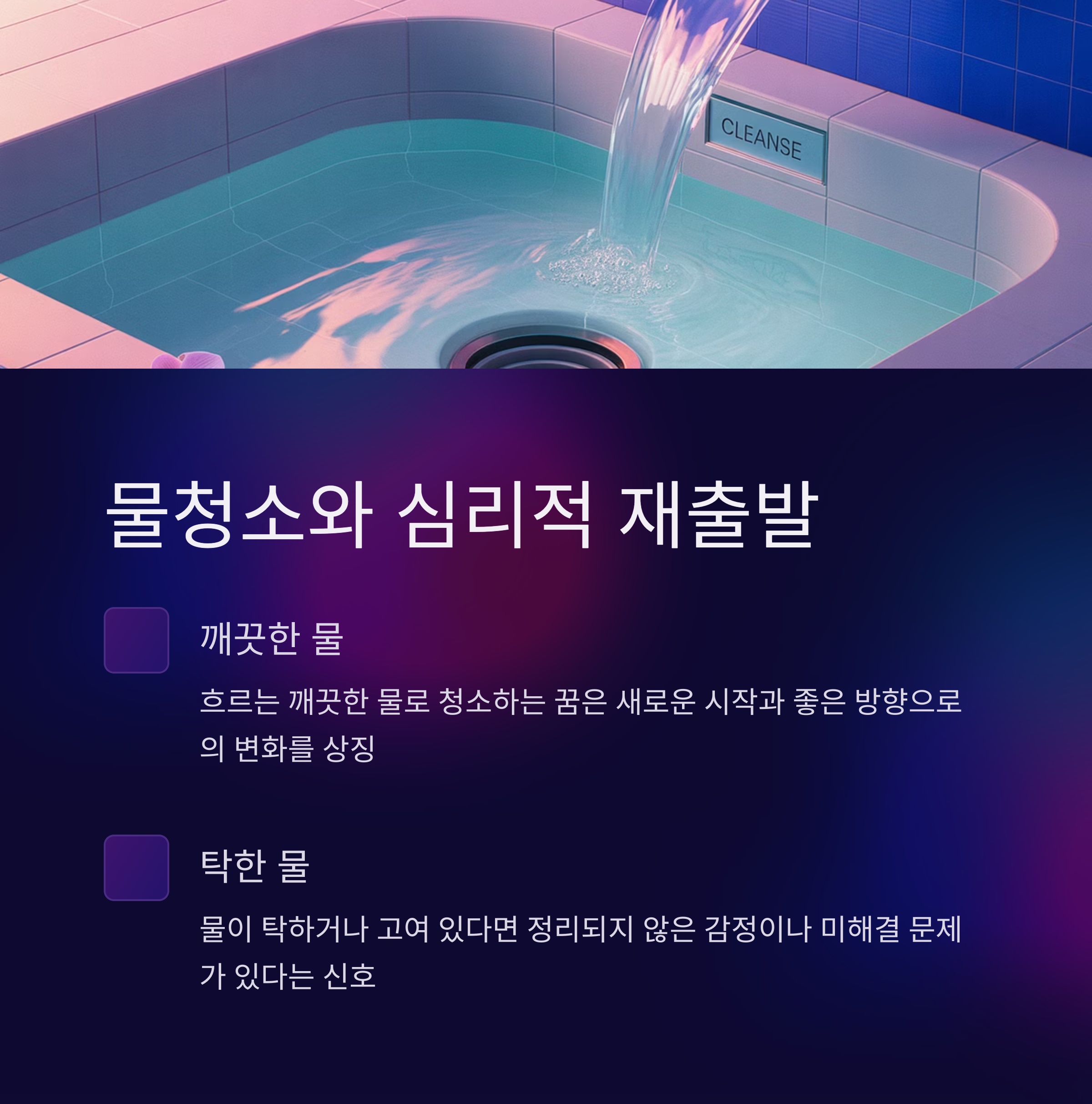 욕실 청소 꿈은 가장 기본적으로 ‘감정의 정화’를 의미합니다.