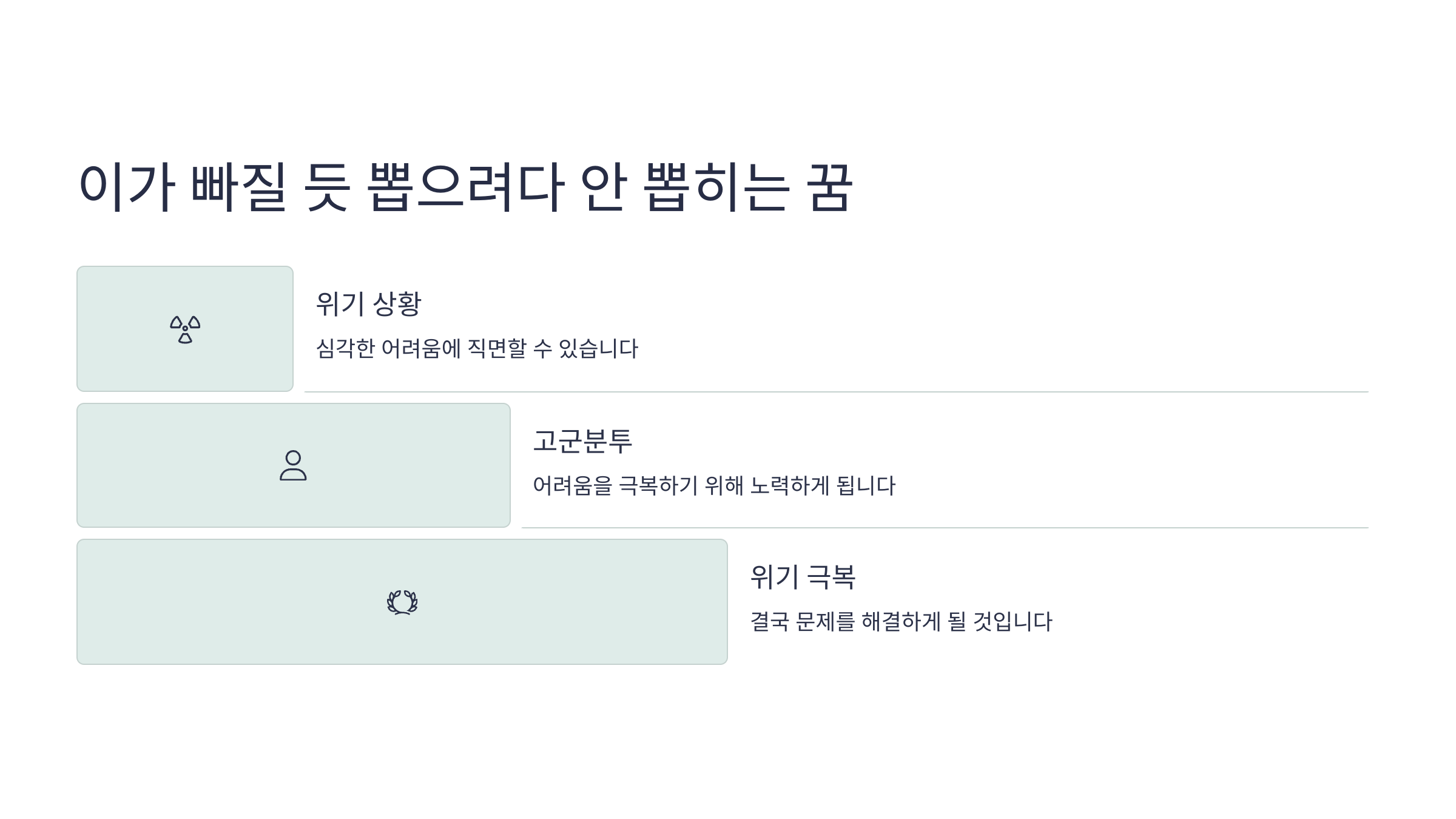| 이가 빠진 후 새로운 이가 나옴 | 성장과 발전 | 새로운 기회 |