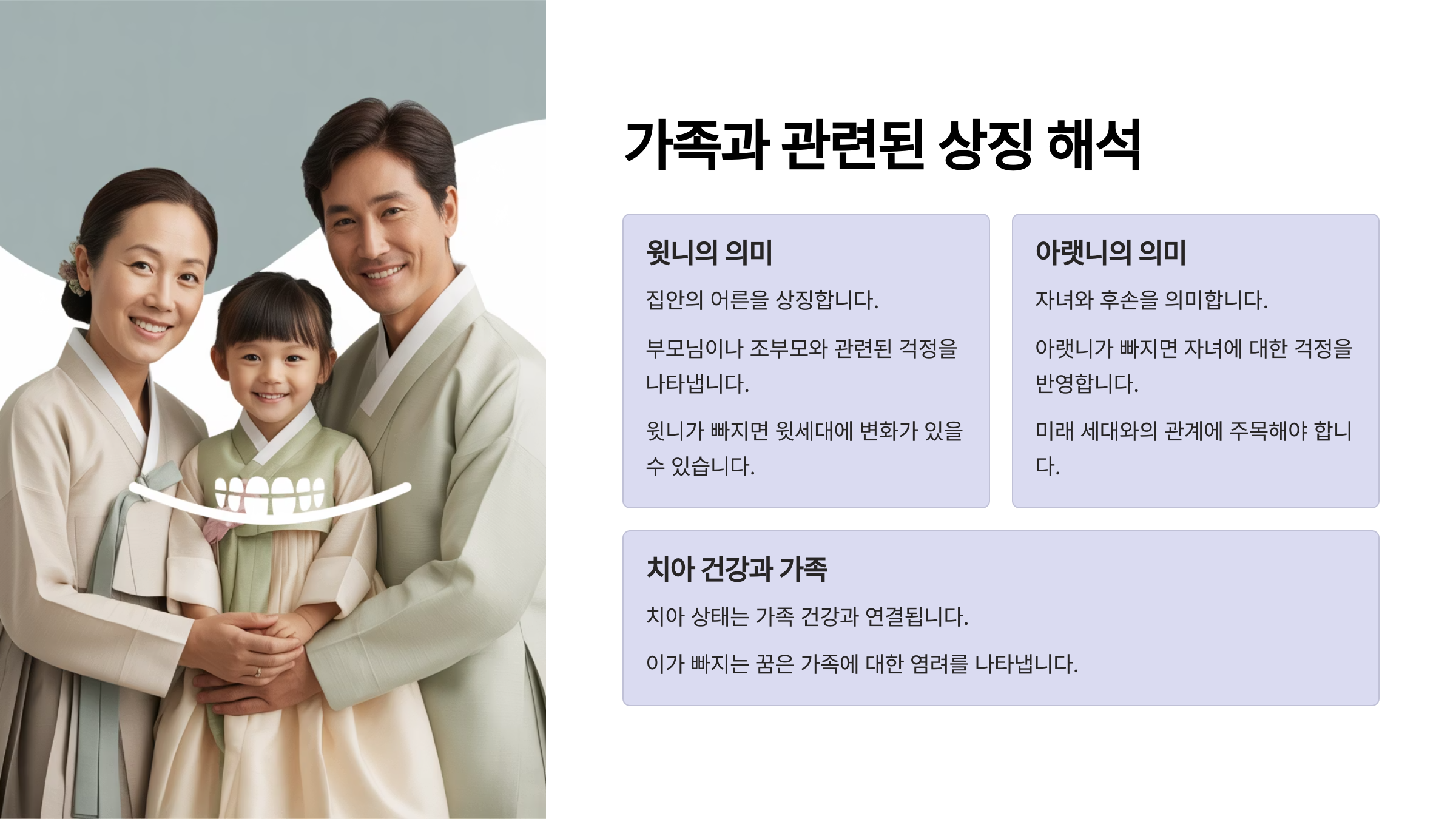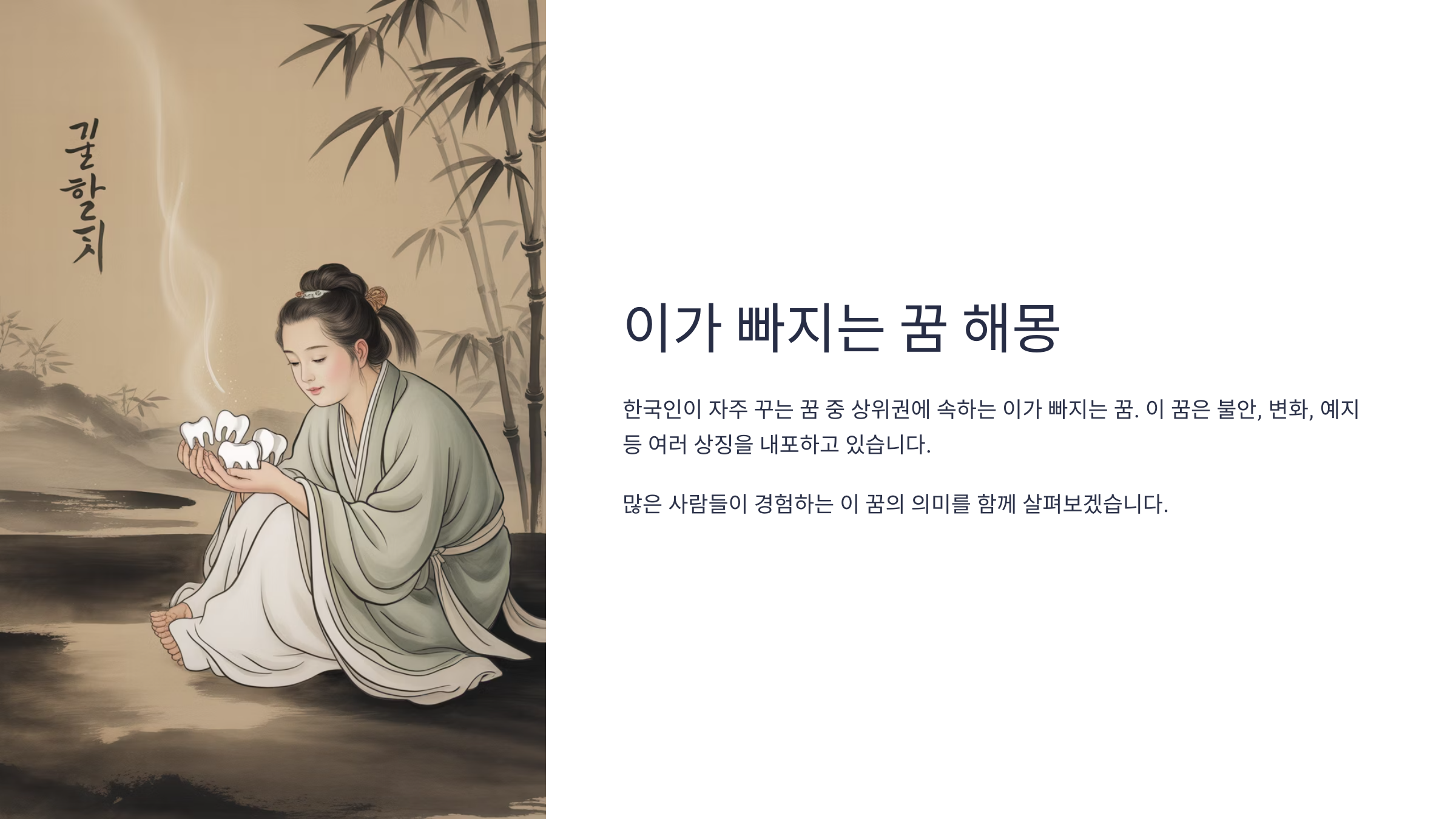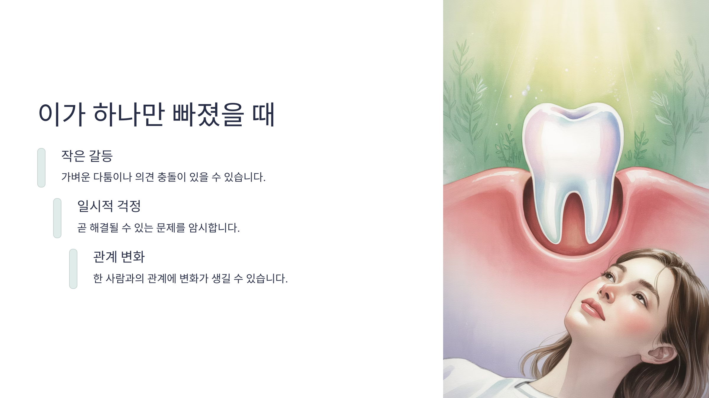 이가 빠지는 꿈은 여러 가지 해석이 가능해요. 때로는 불안, 스트레스, 건강 상태를 암시하거나 반대로 새로운 시작이나 성장의 의미로 해석되기도 한답니다.
