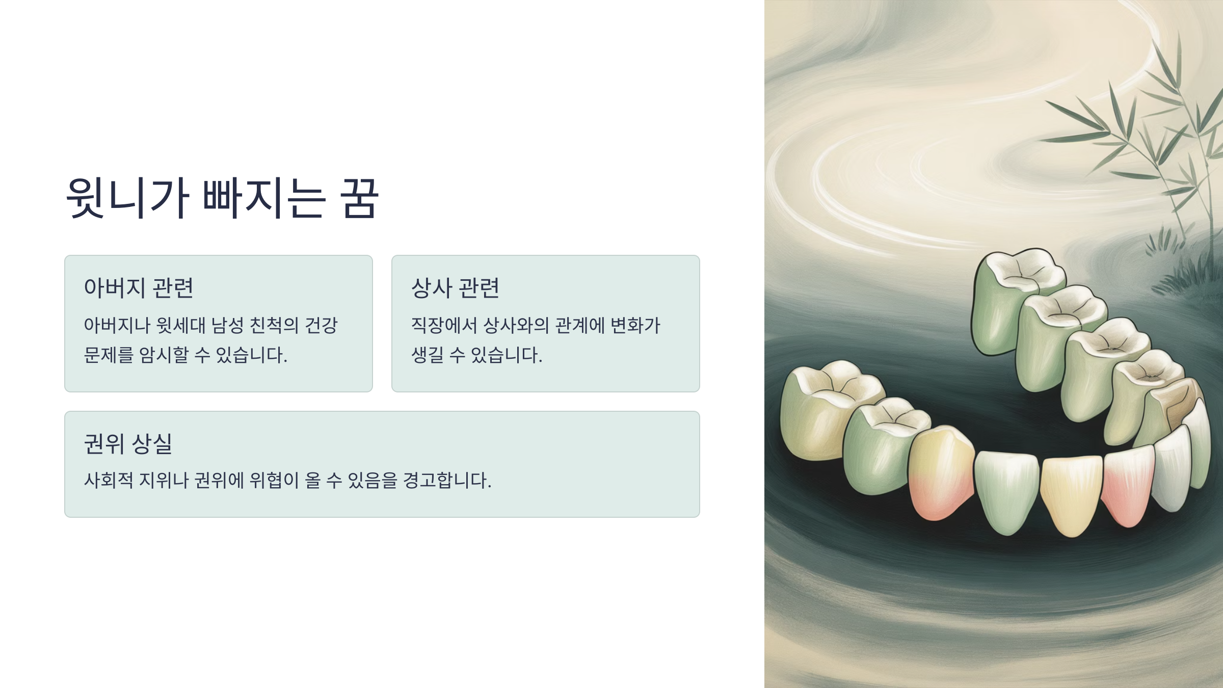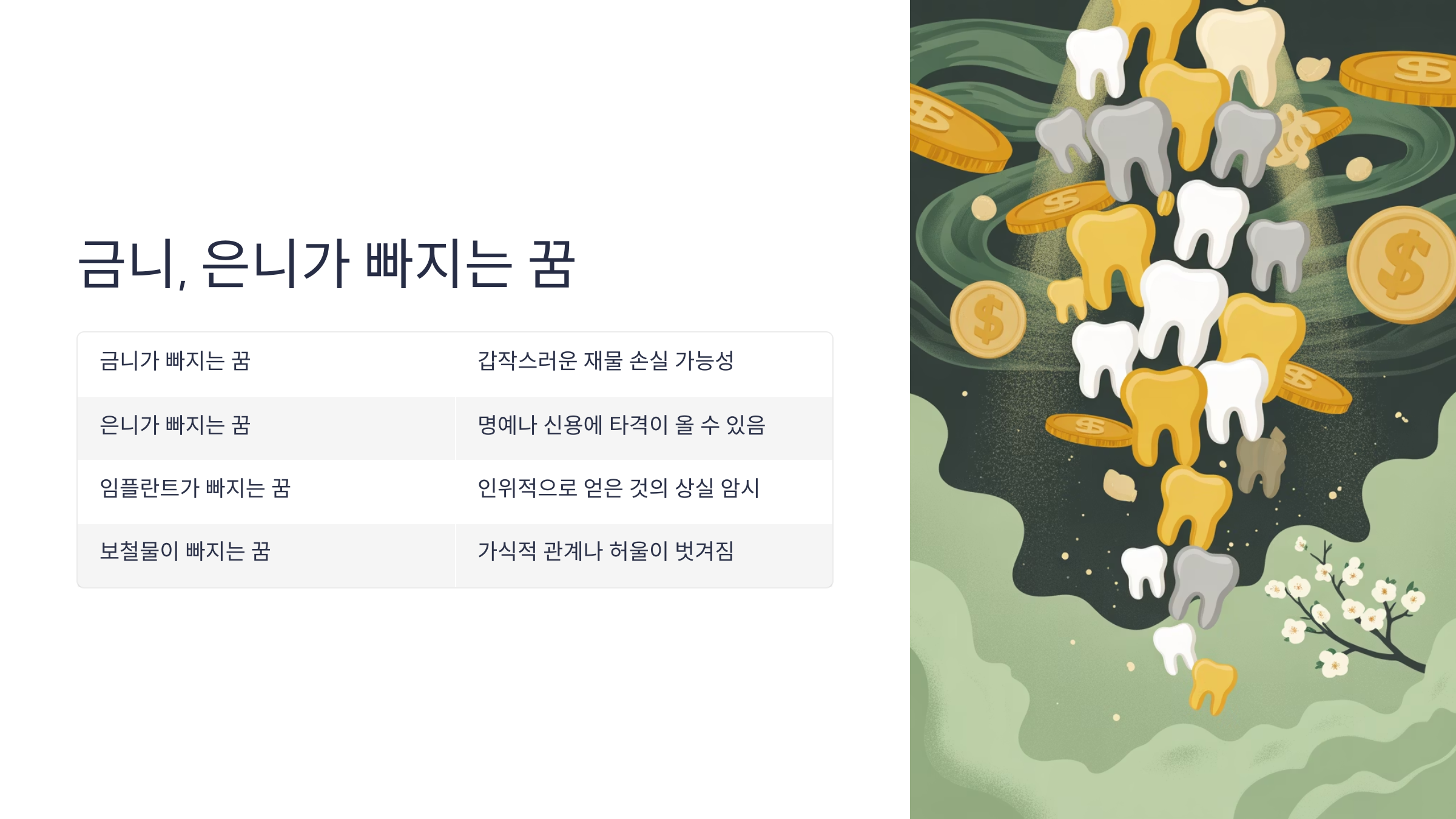 🦷 이가 빠지는 꿈과 심리상태 관계 표