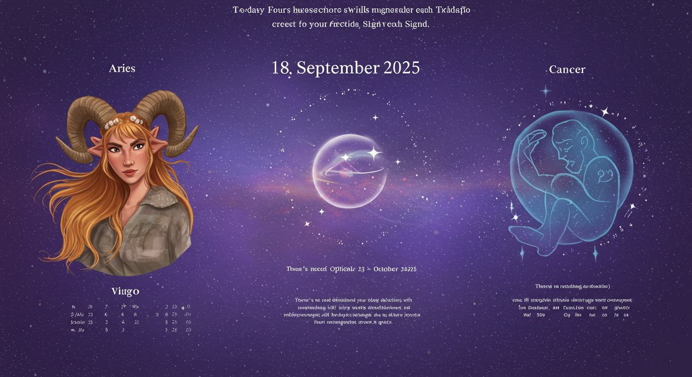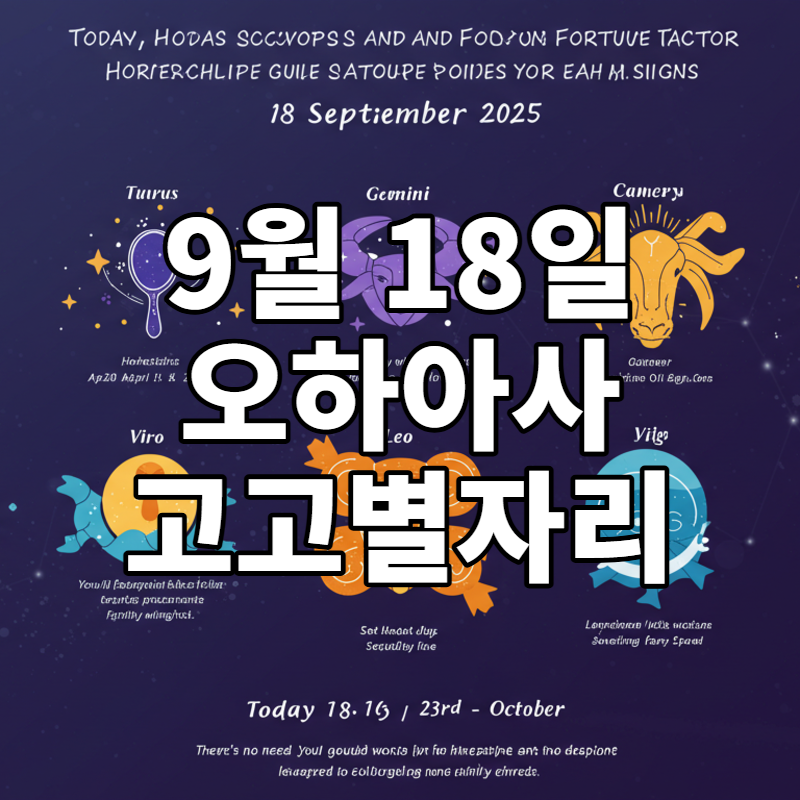 2025년 9월 18일, 오늘 하루를 위한 12개 별자리의 운세와 행운 요소를 알려드립니다. 사랑, 인간관계, 직장, 재물 등 다양한 상황에서의 긍정적인 행동과 선택이 오늘의 운을 좌우합니다. 마음을 솔직히 표현하고 주변과 조화를 이루는 것이 중요해요.