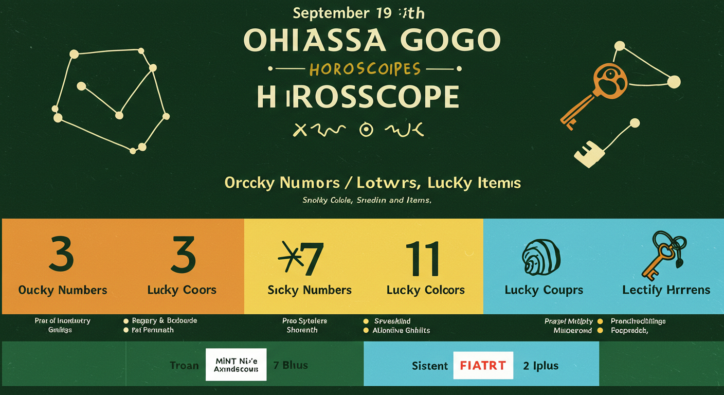 9월 19일 오하아사 고고별자리 12자리 운세 행운의 숫자, 색깔, 아이템