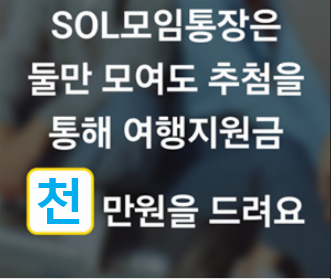 • "SOL모임통장은 둘만 모여도 추첨을 통해 여행지원금 O만원을 드려요"