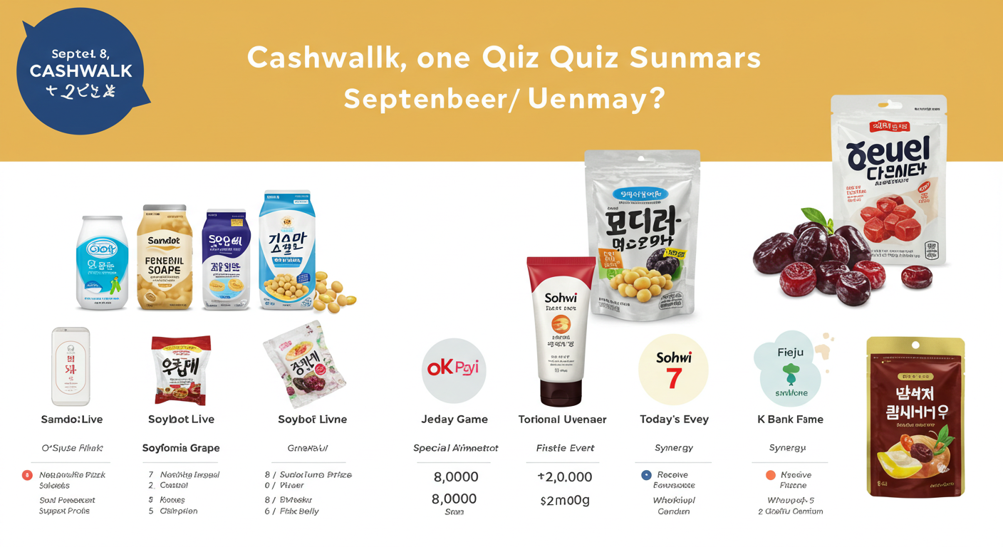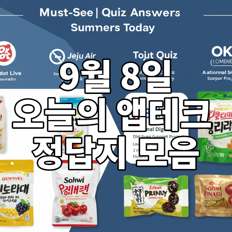 2025년 9월 8일 진행된 다양한 앱테크 퀴즈 정답 정보를 한눈에 정리해 드려요. 비트버니, KB Pay, 캐시워크, 캐시닥, 토스, OK캐쉬백 등 여러 플랫폼에서 출제된 문제와 정답을 확인할 수 있으니, 오늘 퀴즈 참여하신 분들이라면 꼭 참고해 보세요.