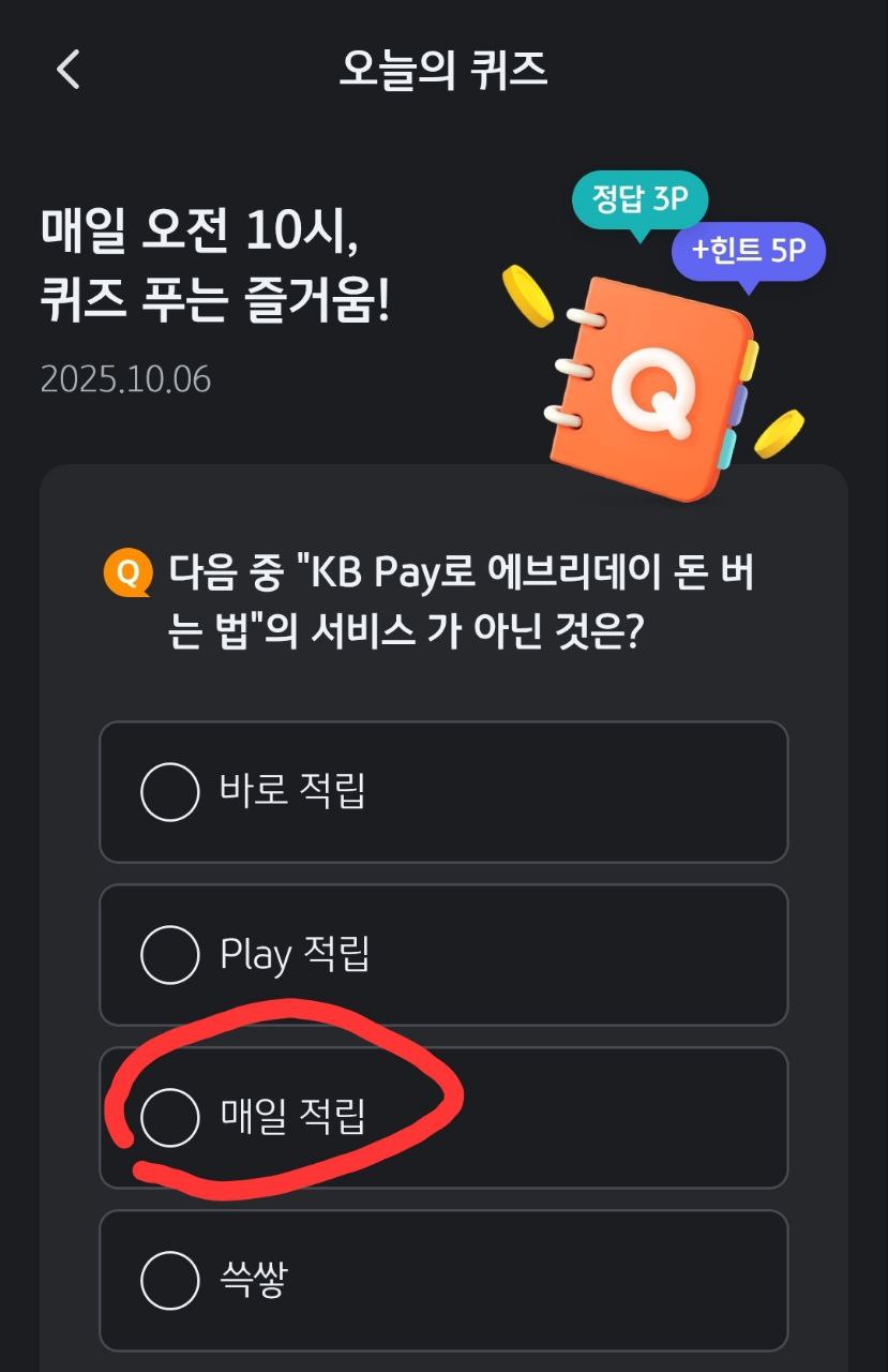 KB Pay ‘오늘의 퀴즈’ 10월 6일 정답 하루 5분으로 포인트 적립! 참여 가이드