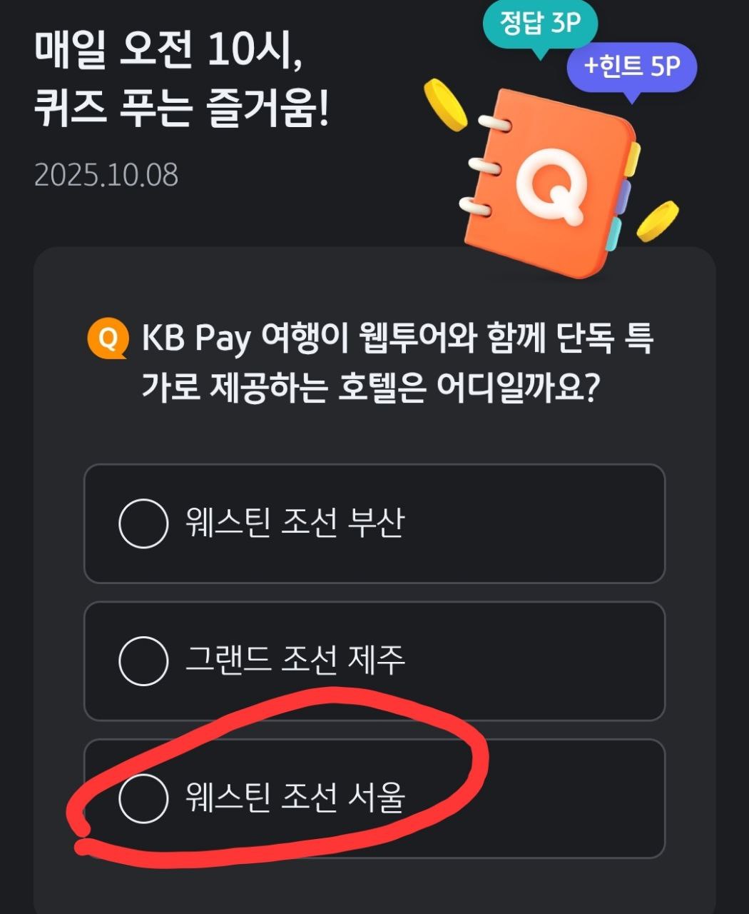 정답을 맞히면 KB금융그룹 통합 포인트인 포인트리가 적립됩니다.